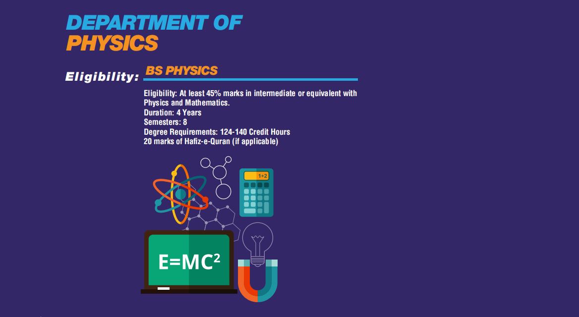 The department seeks to deliver the best scientific methods in teaching of Physics theoretically, computationally, and experimentally and focuses on maintaining the level of education, and community service.