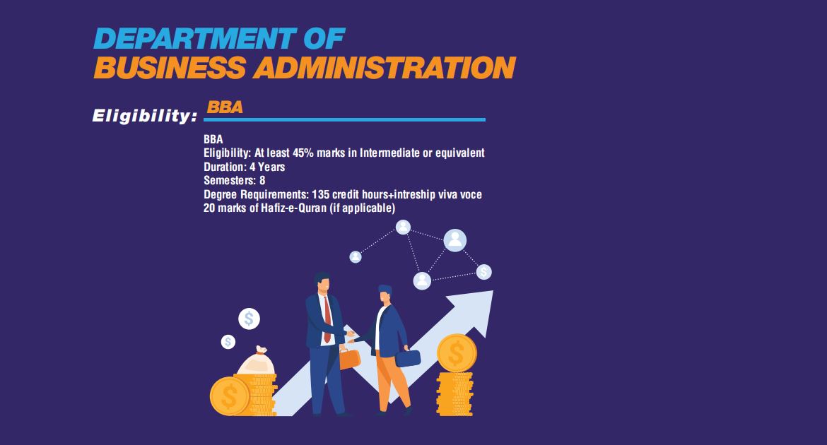 The Department of Business Administration at Baba Guru Nanak University, Nankana sahib is exploring and extending the scientific methods to management, enabling students to understand problem-solving and decision making skills for improving performance of organizations. This department is offering comprehensive schemes of business programs.
